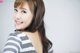 Sweet Im Min Young in black and white stripes mini dress. Enjoy ^^~